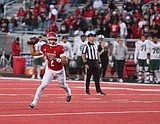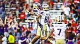 Washington quarterback Demond Williams Jr. (2) tries to escape a collapsing pocket but ends up …