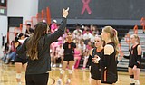 Alyssa Dymarkowski (2) sets the ball during a rally against the Jacks on Tuesday. Head …