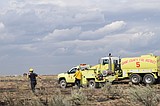 Crews from Grant County Fire District 5 work on mopping up the fire on Monday. …