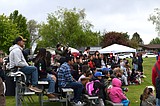 Attendees of Saturday’s Othello Cinco de Mayo event sit on bleachers in front of a …