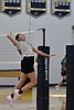 A Cougar player leaps into the air as she serves the ball during warmups at …