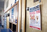 A flier seeking information about Dan Toya hangs in the lobby of the downtown Moses …