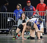 Warden senior Ashley Cruz takes down her opponent in the state tournament last season. Cruz …