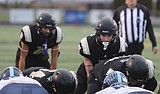 Grant Wardenaar (7) lines up under center for a quarterback sneak play against Lynden Christian …