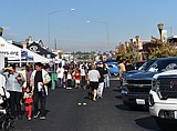 People walk along Third Avenue, admiring the different stands and lowrider cars during the UMANI …