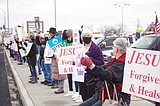 Around 200 people lined Stratford Road for a pro-life rally Sunday.
