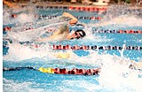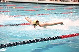 Moses Lake junior Luke Molitor swims the third leg of the 200-yard medley relay at …