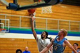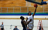 Keenan Miller goes up to score near the rim for the Runnin' Vikes late in …