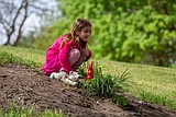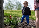 Natalie Lundsten, 2, is filled with excitement finding a rock for the Park Bingo Scavenger …