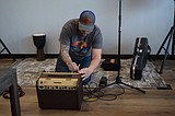 L.J. Polmateer sets up his monitor amp as he gets ready to perform at the …