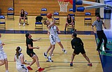 Savana Stephenson skies up for the shot in the paint to score in the first …