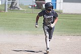 A player for the 12U Central Washington Sixers keeps his eye on the pitcher while …