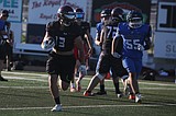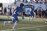 A Warden receiver runs upfield after the ball is snapped during a scrimmage against Wahluke.