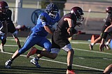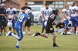 A Warden defender dives in to attempt a tackle against a Wahluke running back.