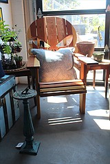 A chair, a table, some plants and just cool stuff like a sundial, here at …