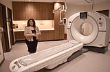 Radiology Manager Veronica Cruz introduces QVMC’s new, higher-quality CT scan machine.