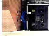 A student uses the new video intercom system at Ephrata High School to speak with …
