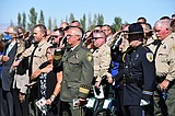 Law enforcement officers salute at the start of a memorial service Thursday at Cave B …
