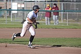 Moses Lake senior Nolan Crawford starts to slide into third base in the bottom of …