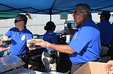Quincy Police Detective Jazz Silva, left, and Officer Sal Mancini dish up hot dogs during …