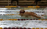 Cole Lindberg makes his way across the pool in the 100 yard butterfly event on …