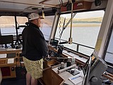 Tugboat captain and pilot Andy Bradley at the controls of the tugboat Lincoln. Even with …