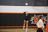 Junior Addison Mills performs a serve in the Tigres’ opening set against the Cascade Kodiaks …