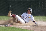 Moses Lake senior Nolan Betz slides across home plate to score Moses Lake’s first run …
