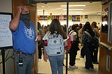 Security officer Scott Strom directs traffic on the first day of classes at Frontier Middle …