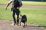A K-9 demonstration was put on toward the end of the game, with an officer …