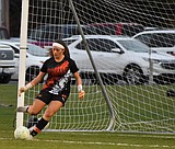 Tigers goalkeeper Alyana Valle kicks the ball to an open teammate during Tuesday’s game against …