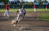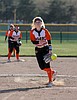 Raegan Hofheins beats the errant throw to first base on her way to a home …
