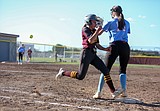Laurissa Martinez watches in the pitch from home plate on her way to a 3-4 …