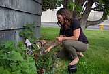 Alicia Mohs plants some new things in the small garden area in front of her …
