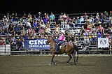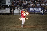 Rider Kiesner performs during an intermission show on Friday, entering the arena to Fall Out …