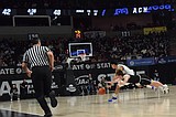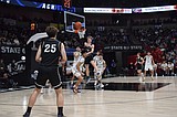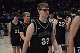 Caiden Correia (32) heads for the basket in ACH’s win in the second round of …