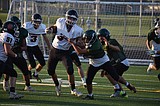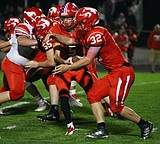 Quincy defenders take down an Ephrata running back during the jamboree.