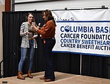 Angel Ledesma, right, presents Kelsie Eddie of Moses Lake with the Community Hero Award on …