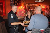 Moses Lake Police Chief Kevin Fuhr talks with customers during Tip A Cop night at …