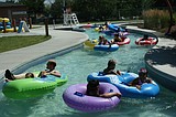 Swimmers take their ease on the Lazy River ride at the Surf ‘n Slide water …
