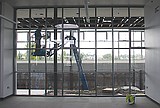 A worker puts some final touches on the inside of the Moses Lake Civic Center. …