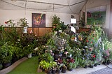 A variety of plants and flowers sit near the entrance of the Flower Building at …