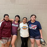 The Wahluke girls wrestling state qualifiers stopped for a photo Wednesday before heading out to …