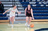 Alivia Johnson, a senior for the Mavs this season, dribbles the ball toward the hoop …