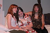 Donna (Calissa Dalton, center) is comforted by her friends Rosie (Emma Leavitt, left) and Tanya …