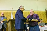 Ephrata Mayor Bruce Reim presents the Spirit of Ephrata award to Mike Scellick. The award …