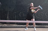 Kalei Bruce of the Mavs’ girls first doubles team said she and her partner Kiley …