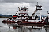 The tugboat Lincoln moored in Rainier, Oregon. Operated by Shaver Transportation, the tug is used …
