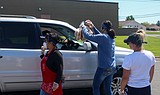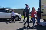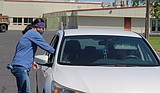 Casey McCarthy/The Sun Tribune Jezabel Pinales, left, waits for the next car to pull up …