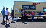 Zuri Zayas, left, chats with an Othello resident as they pull up at the meal …